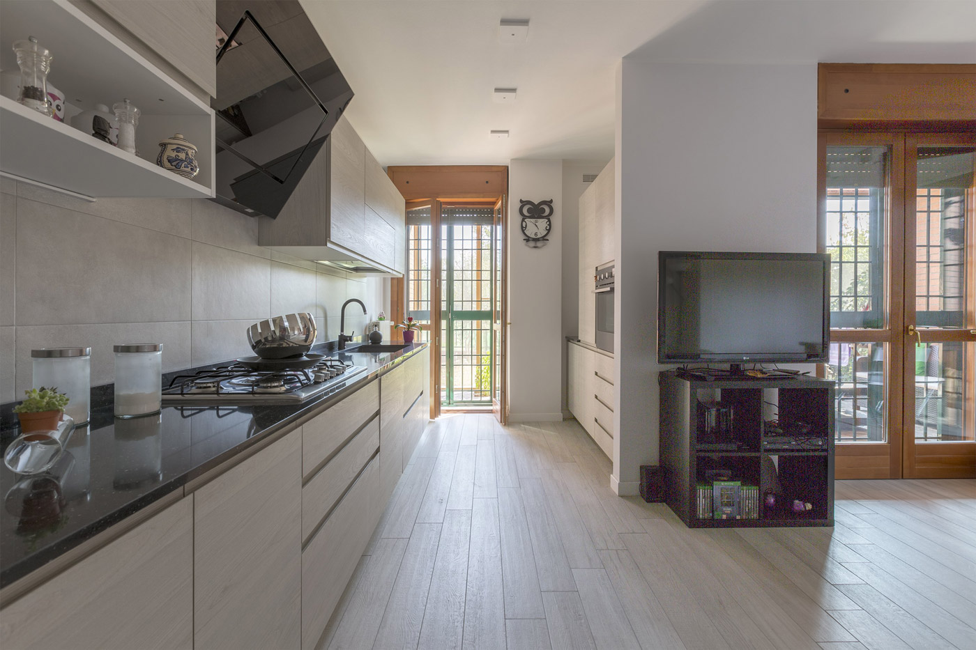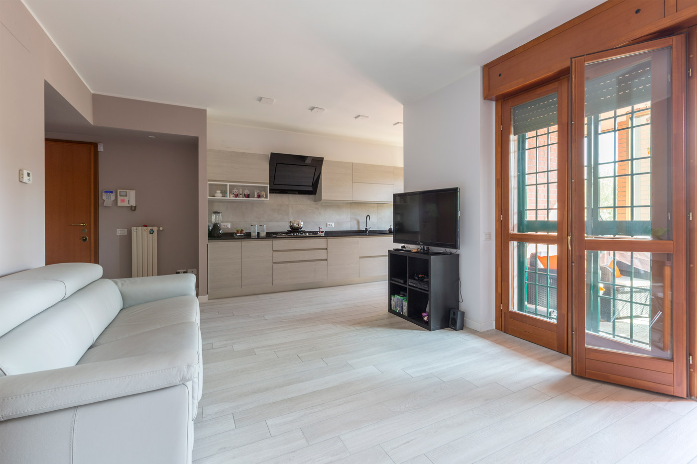 Rimozione parete soggiorno/cucina, pavimento in ceramica, zoccolini, radiatori e minuterie.