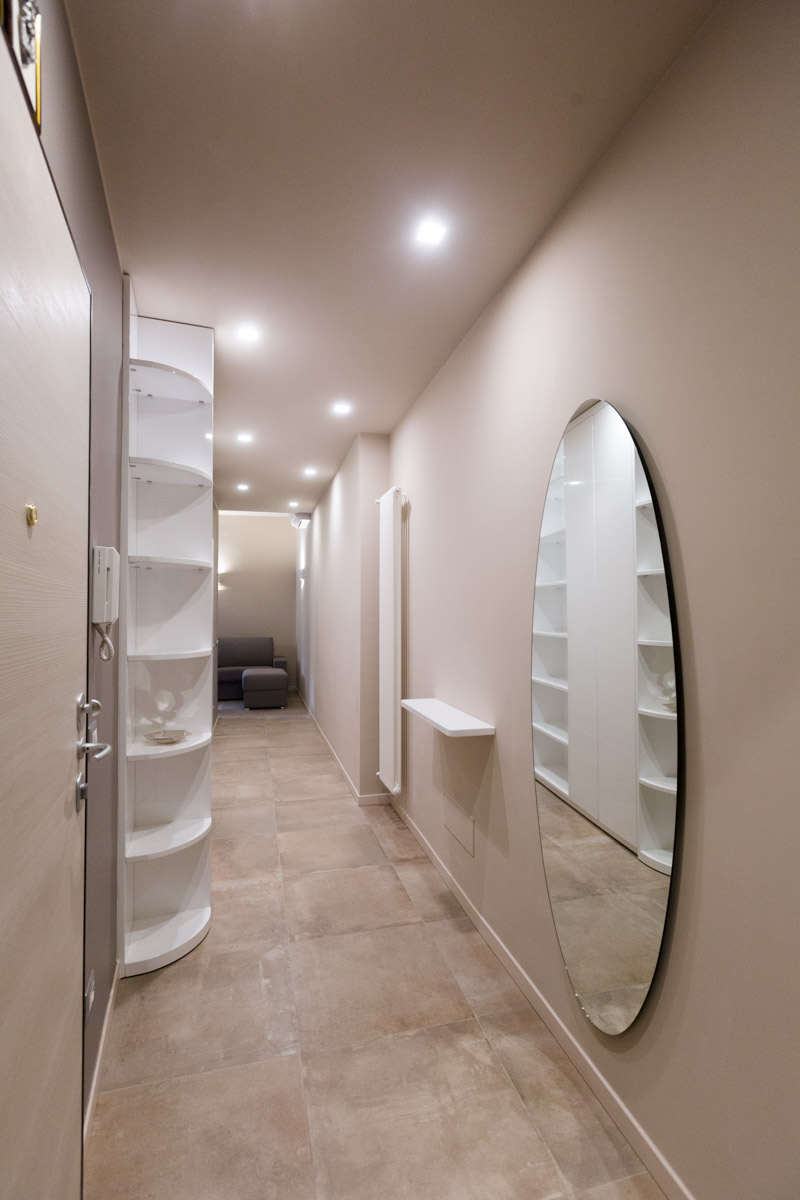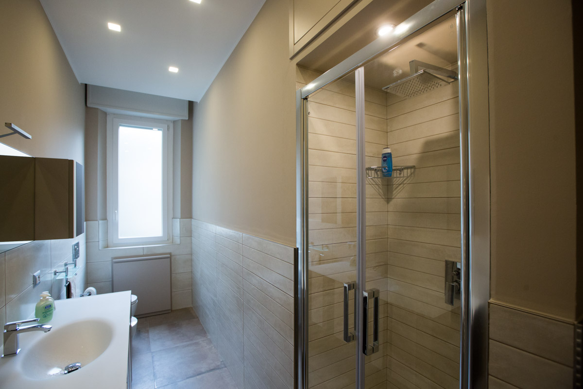 Pose in opera: posa in opera di pavimento in gres porcellanato, posa in opera di parquet prefinito da incollare, posa in opera di rivestimento in gres porcellanato nei bagni, posa in opera di battiscopa in legno o in gres porcellanato (intero appartamento escluso bagni), posa di porte a battente e scorrevoli, posa in opera di sanitari sospesi, posa in opera di porta blindata, posa in opera di trial split con fornitura di gas refrigerante, posa in opera di nuove tapparelle esterne, posa in opera di nuovi cassoni coibentati in pvc, posa e fornitura di motorizzazione avvolgibili, compreso rullo, motorino e punti elettrici.